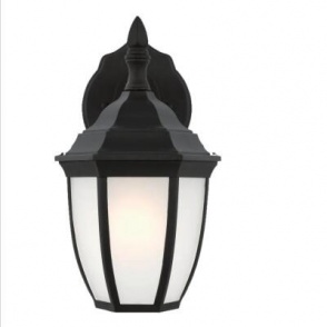 1-Light Outdoor Wall Lantern Light Source: 1*E26 Medium Base Bulb Max 100W Material: Aluminum + Glass Finish: Black Glass: Etched/Clear Beveled Glass Wet Location Size:W6-3/8" x E7-7/8" x H11"